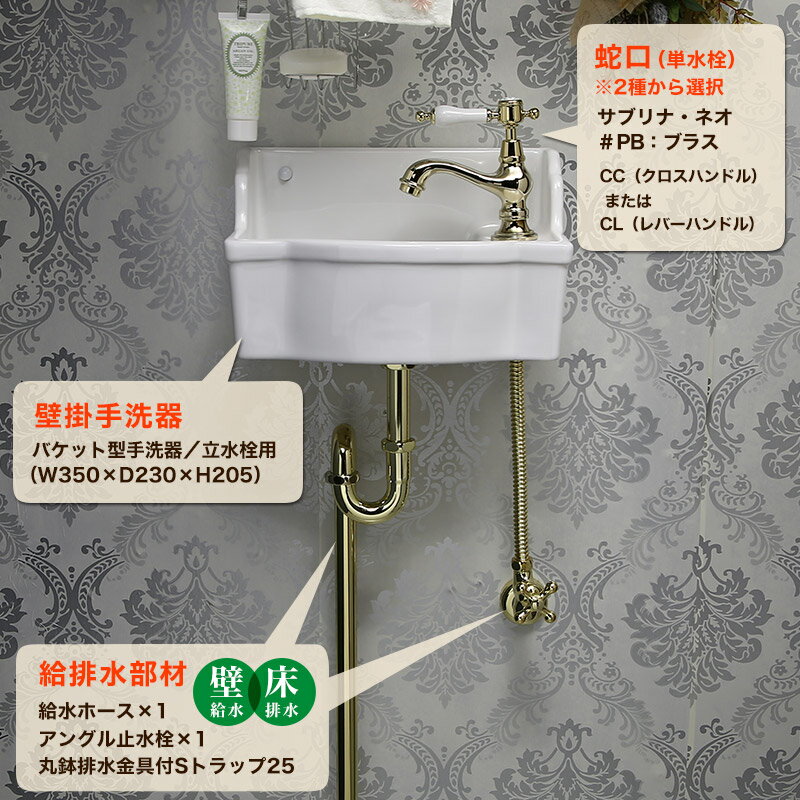 マチルダ 蛇口 サブリナ・ネオ (ブラス) 壁掛手洗器 給排水部材(壁給水・床排水) フルセット 洗面 トイレ 手洗い