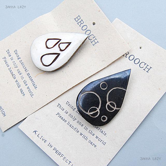 ブローチ アクセサリー 水牛 骨 ボーン 可愛い ギフト プレゼント ドロップ 雫 しずくシンプルなデザインなので洋服を選ばずつけれます!